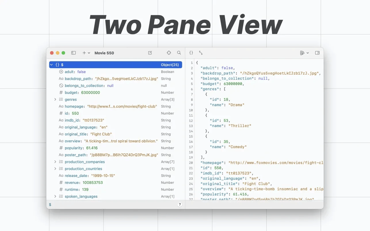 - 结构树视图 + 文本编辑器:同时支持以树状结构查看 JSON 数据和纯文本格式进行编辑。